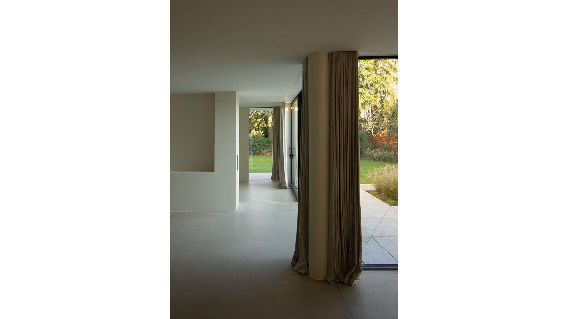 Das Souterrain wird durch einen subtraktiven Eingriff neu organisiert: Teile der bestehenden Kellerdecke werden entfernt, sodass einzelne Bereiche von Keller- und Erdgeschoss räumlich miteinander verbunden werden. Dadurch entstehen zweigeschossige Räume mit direktem Bezug zum Garten. Neue Öffnungen und Zugänge belichten die Räume zusätzlich und ermöglichen eigenständige Wohneinheiten im Sockel.